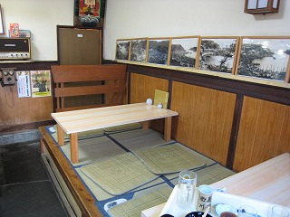 座敷席が2つほどあります。壁には昔の波浮港の様子をうつした写真がいくつも飾られています