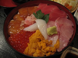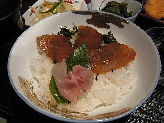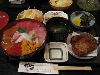 魚介の丼と、地モノを使った汁や添え物などが味わえます