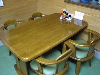 お店に入るとテーブル席が4つあります。明るくて