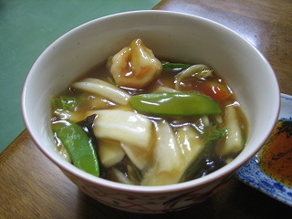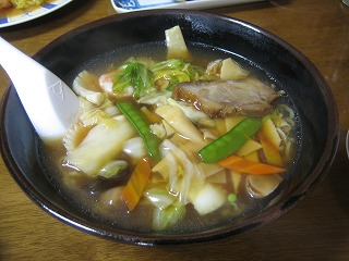 ラーメンの上の野菜餡が香ばしい