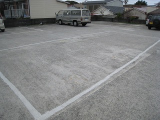駐車場はお店の向かいにあります。真ん中の四角く囲ったスペースに停めましょう