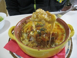 熱々!上のチーズの表面がカリっとしてて香ばしくて美味しい