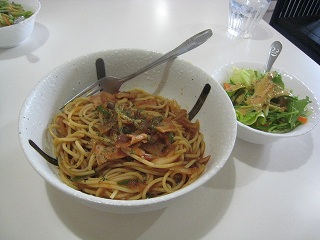 トマトがあっさり、ベーコンの塩っ気でほどよい味付けです。パスタもアルデンテでイイ感じ
