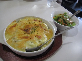 ホワイトソースが美味しいですね。タマネギとエビとイイ香りがします。チーズも香ばしい〜