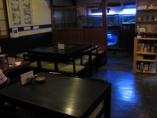 席はカウンターとテーブル席が3つ(4〜8人掛け)と