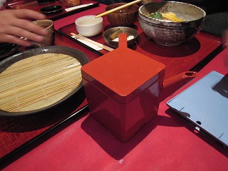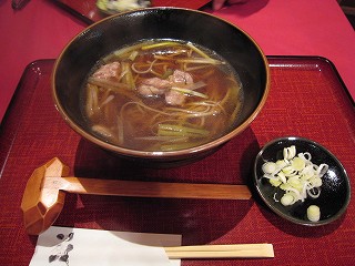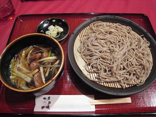 | 鴨せいろ | 冷たいそばに温かいサッパリめの汁をつけて食べます。焼いた鴨肉がジューシーです |