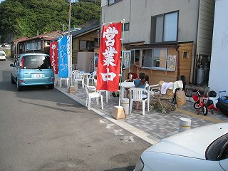 夏期のみの営業で、看板こそありませんがテーブルと"のぼり"があるので営業していればすぐわかります。 |