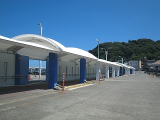 | 桟橋の根本部分は主に客船の上下船に使われるため雨よけが付きました(汐風プロムナードと言うそうです)。 |